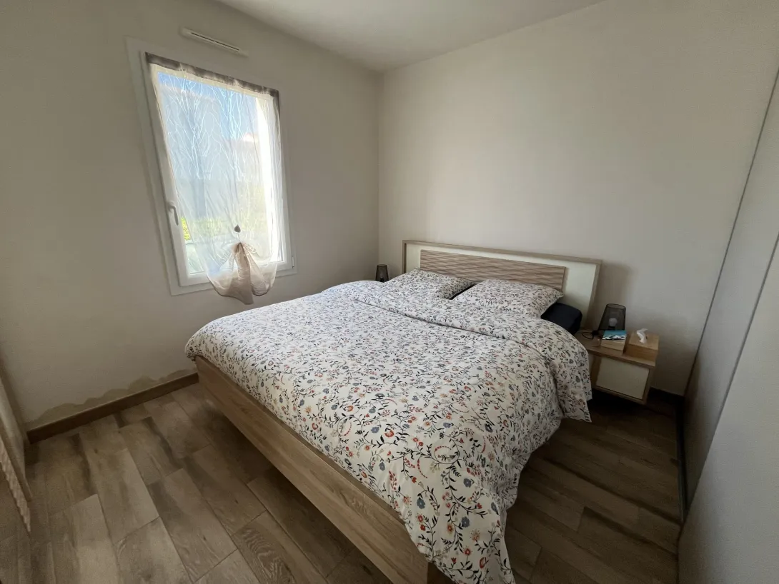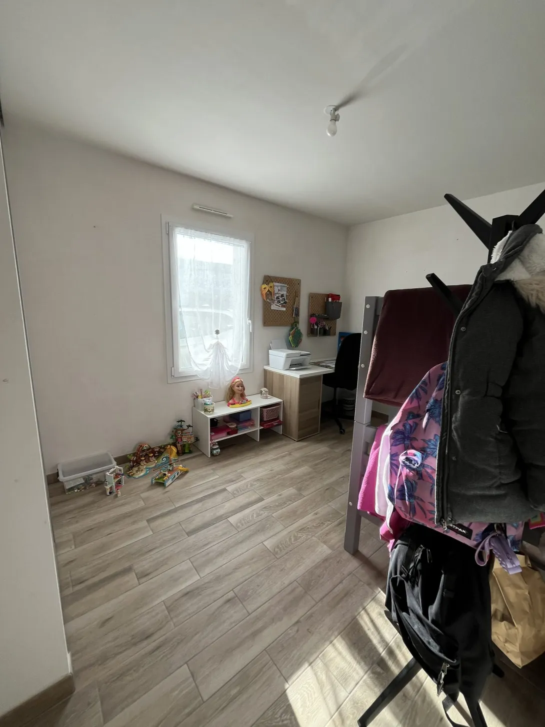 Au cœur d'un lotissement, une maison récente de plain-pied de 96 m² comprenant pièce de vie, cuisine, lingerie, 3 chambres dont 2 avec placard, salle d'eau, WC.