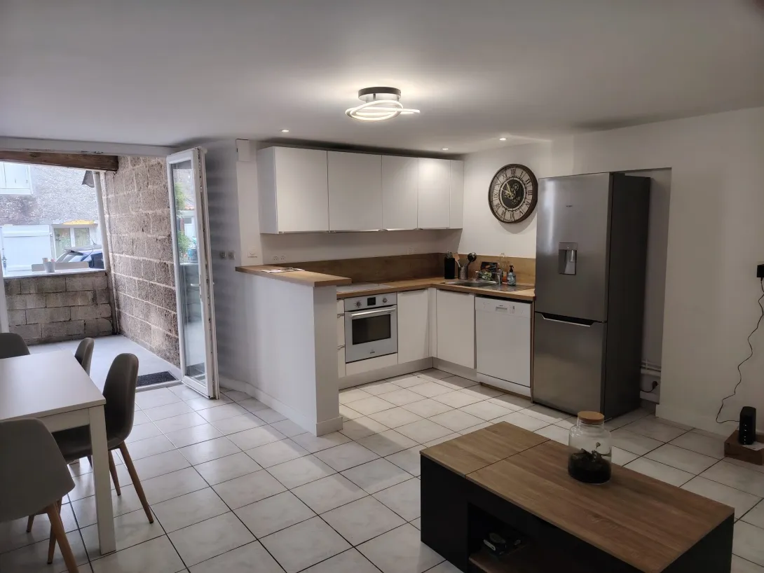 Petite maison MEUBLE de 45 m² habitable au calme dans le bourg, Elle se compose d'une pièce à vivre avec cuisine aménagée équipée, à l'étage : palier pouvant servir de bureau, 1 chambre, salle d'eau, WC.